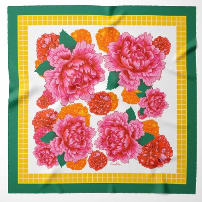 Inspired by trips to Italy and lounging by Lake Como. Artist-designed 100% silk scarf.